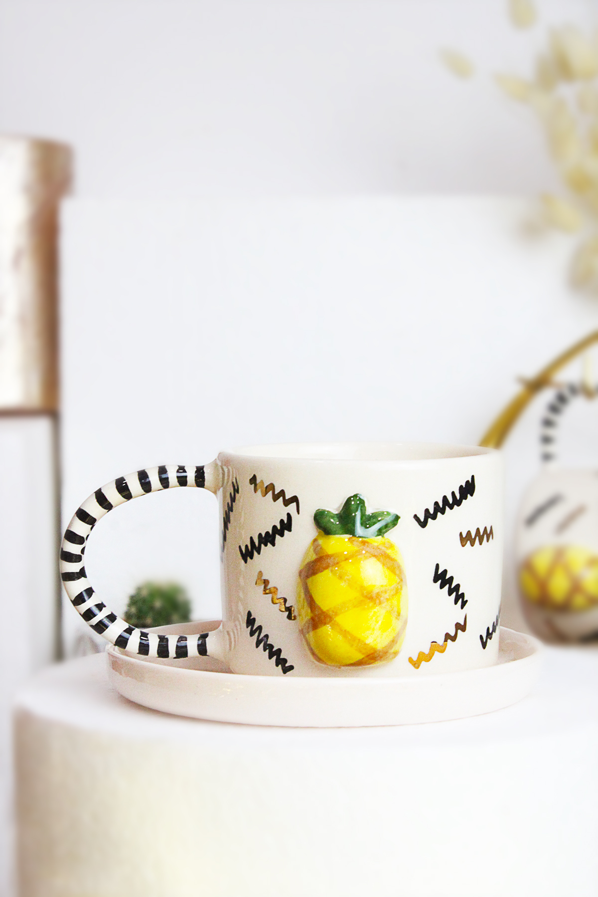 Ananas Figürlü 24K Altın Dekoratifli Mug
