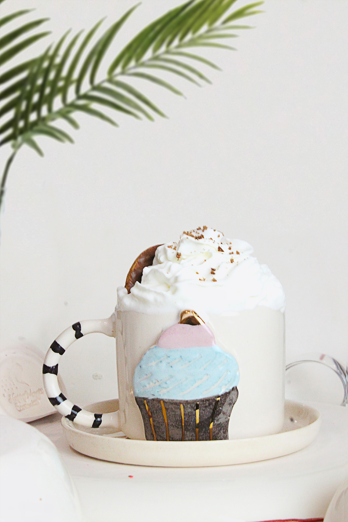 Cup Cake Figürlü 24K Altın Dekorlu Seramik Mug