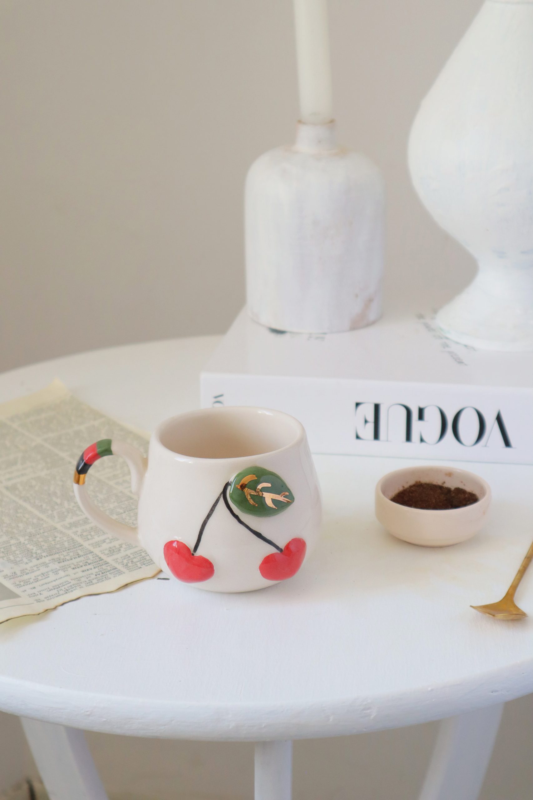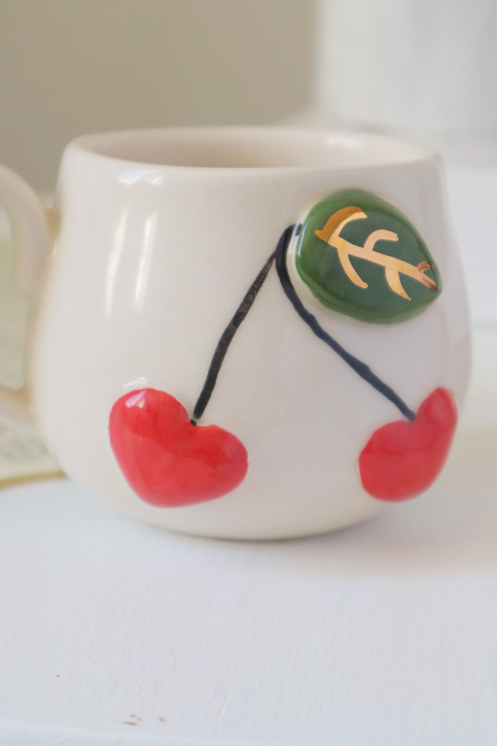 Kiraz Figürlü 24k Altın Dekorlu El Yapımı Seramik Mug 250ml