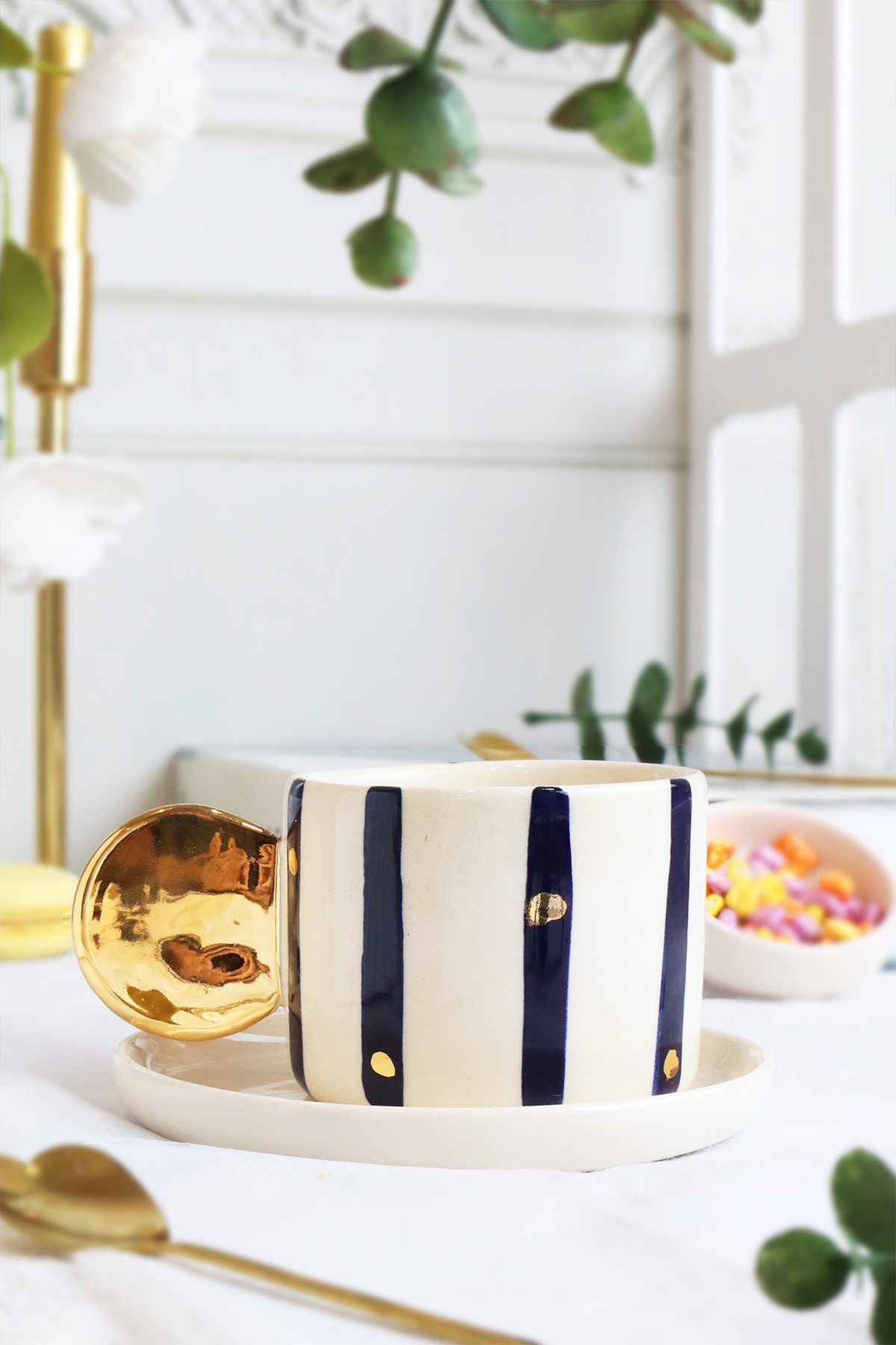 Özel Tasarım 24K Altın Dekorlu El Yapımı Seramik Mug