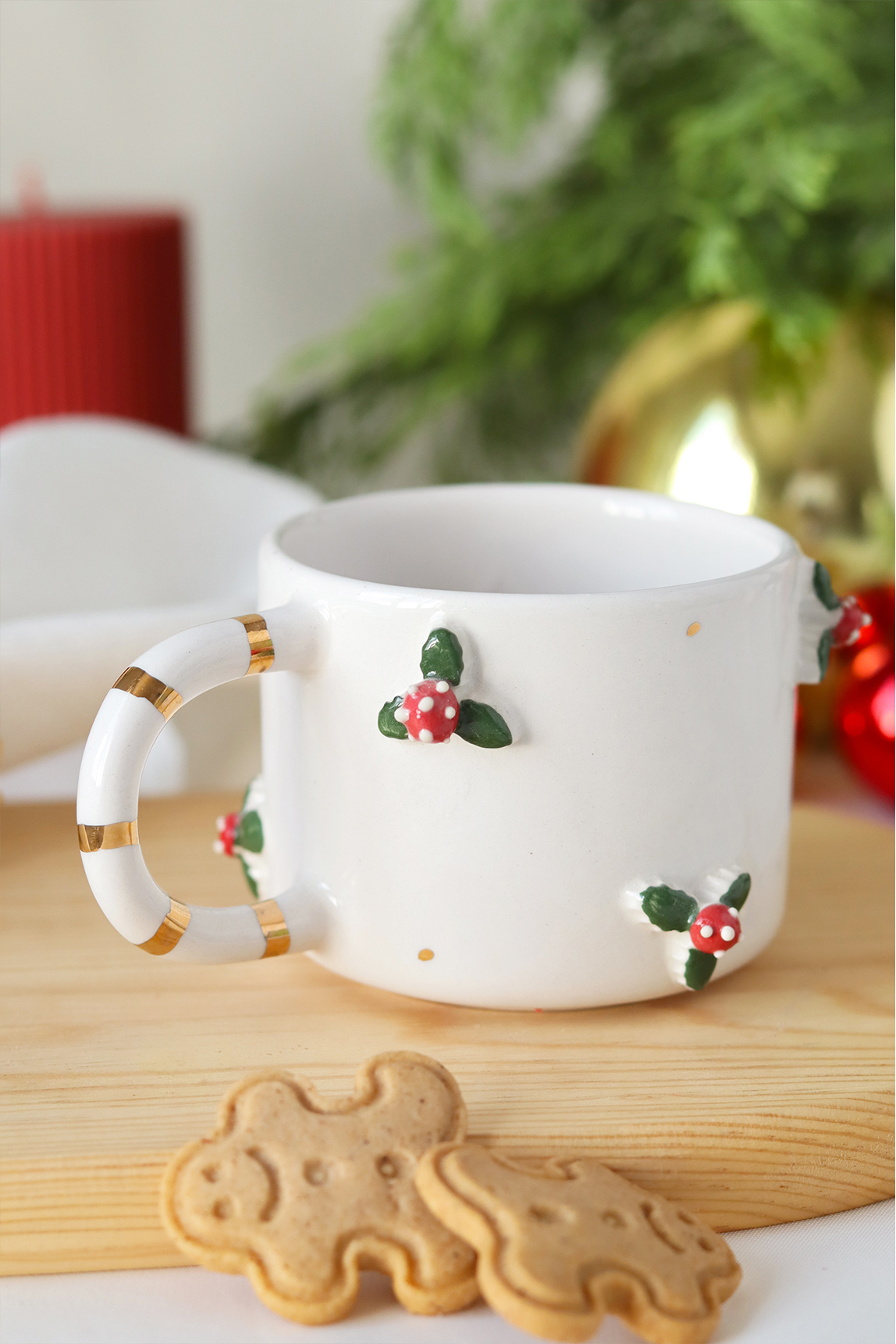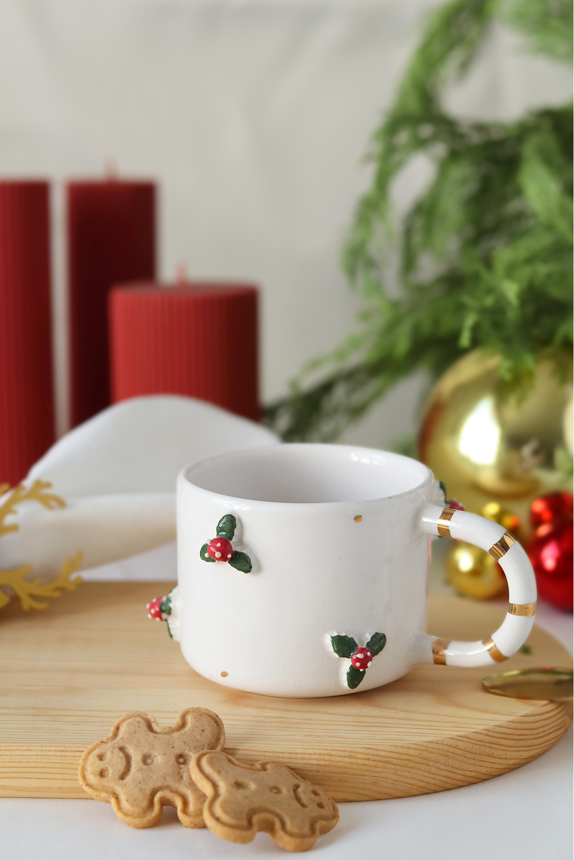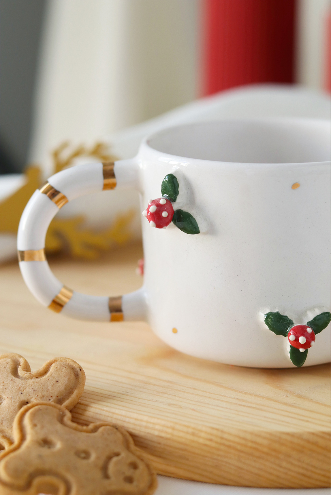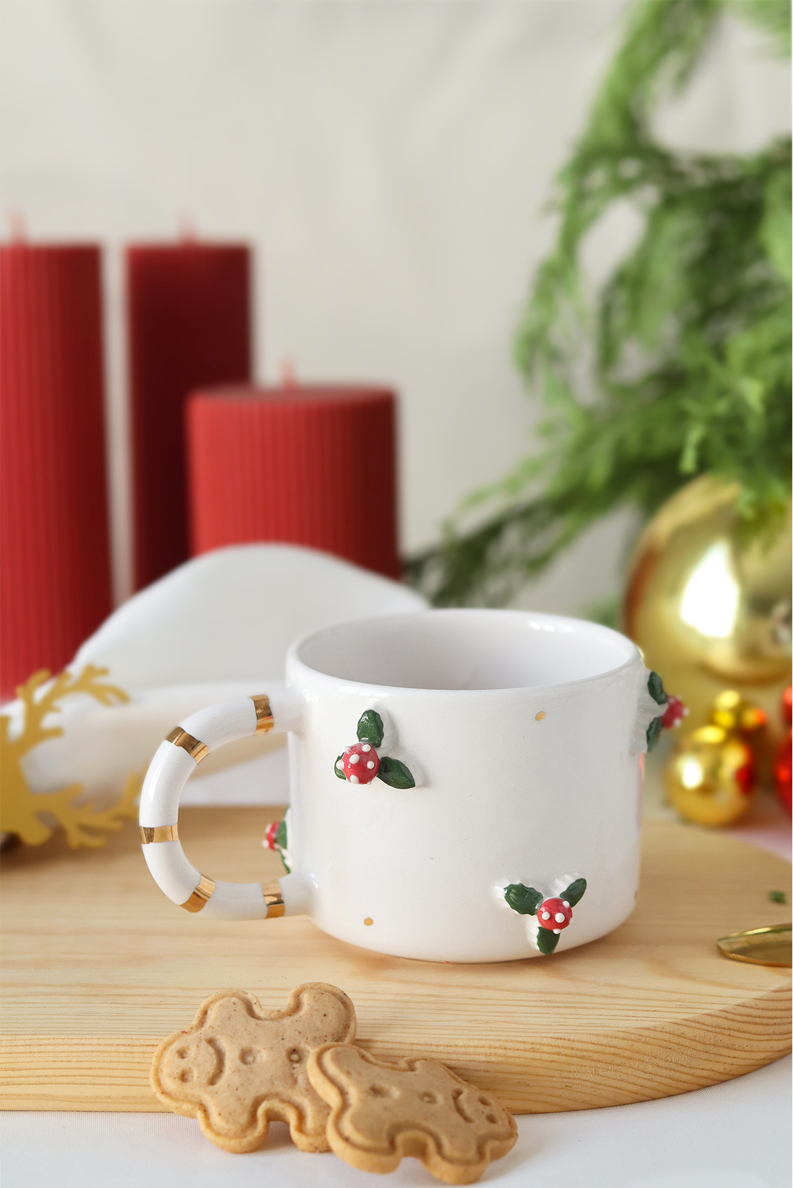 Yılbaşı Kokina Figürlü 24k Altın Dekorlu El Yapımı Seramik Kupa 200ml
