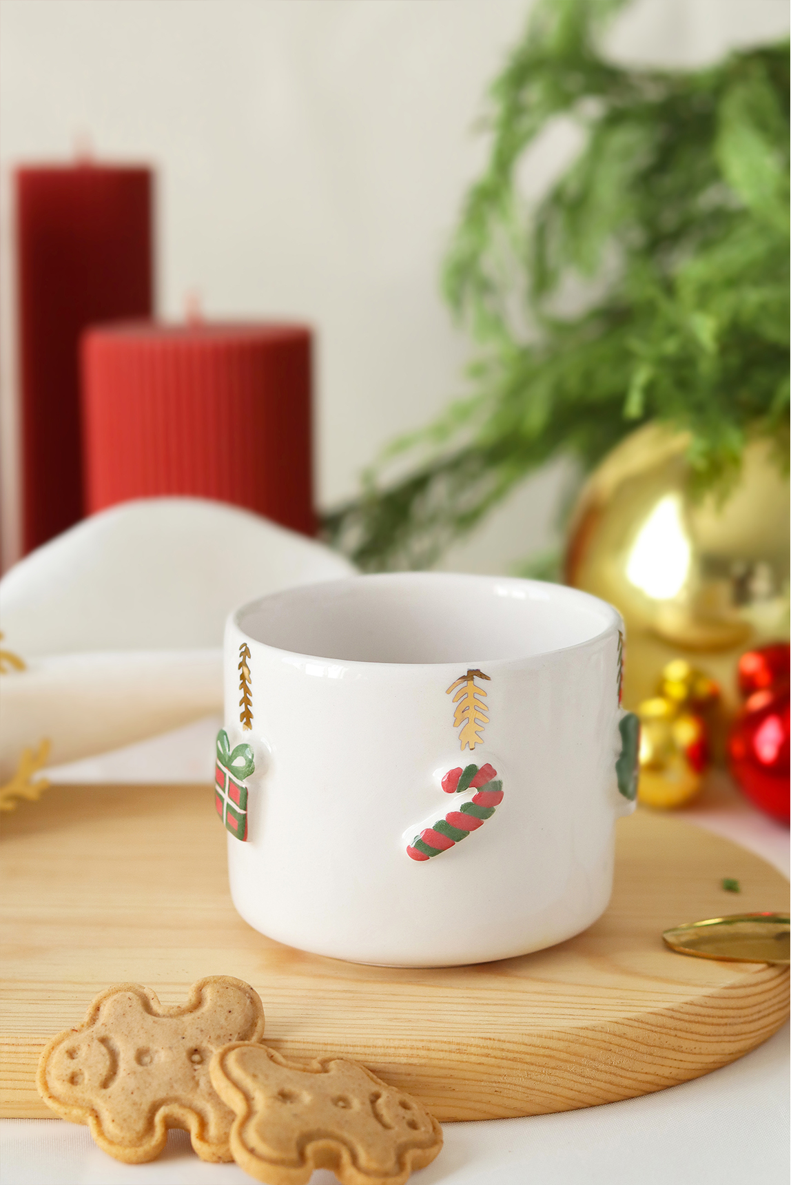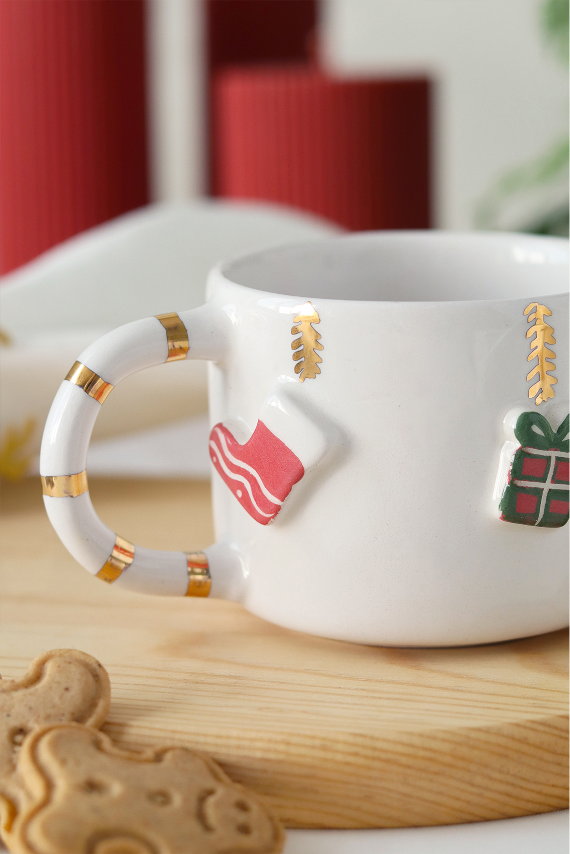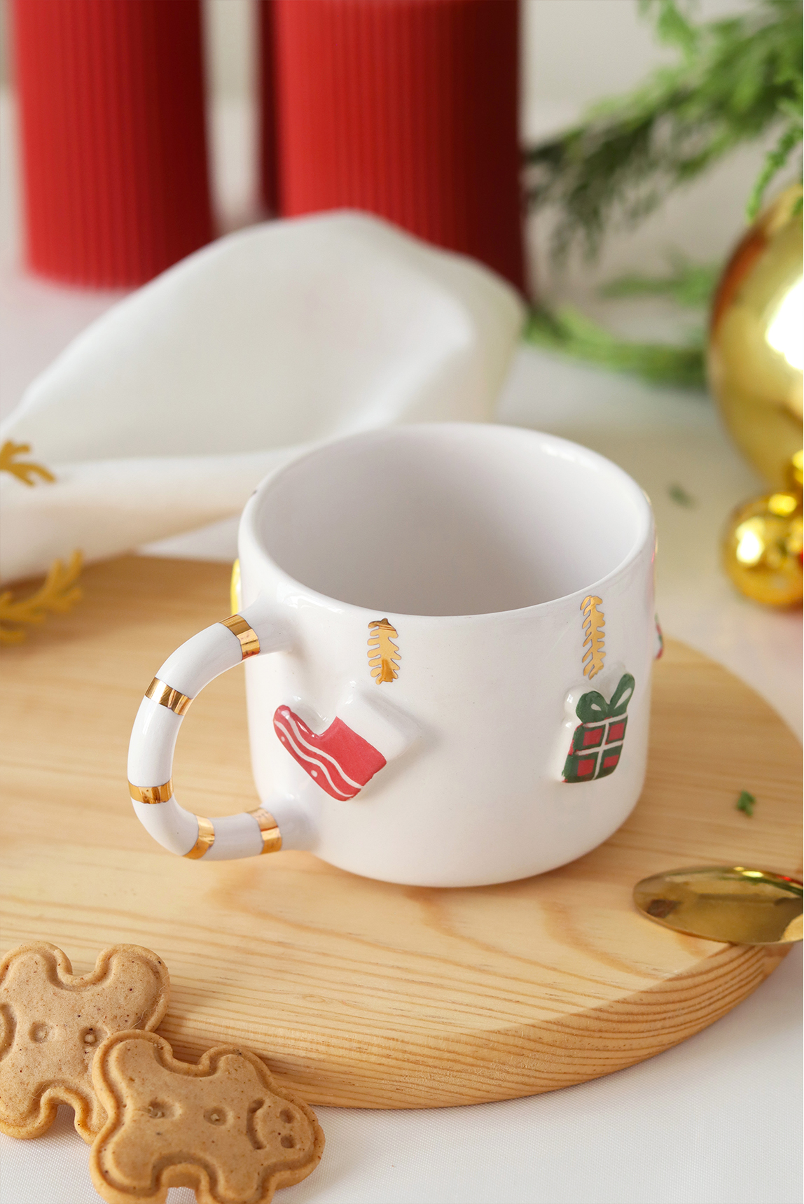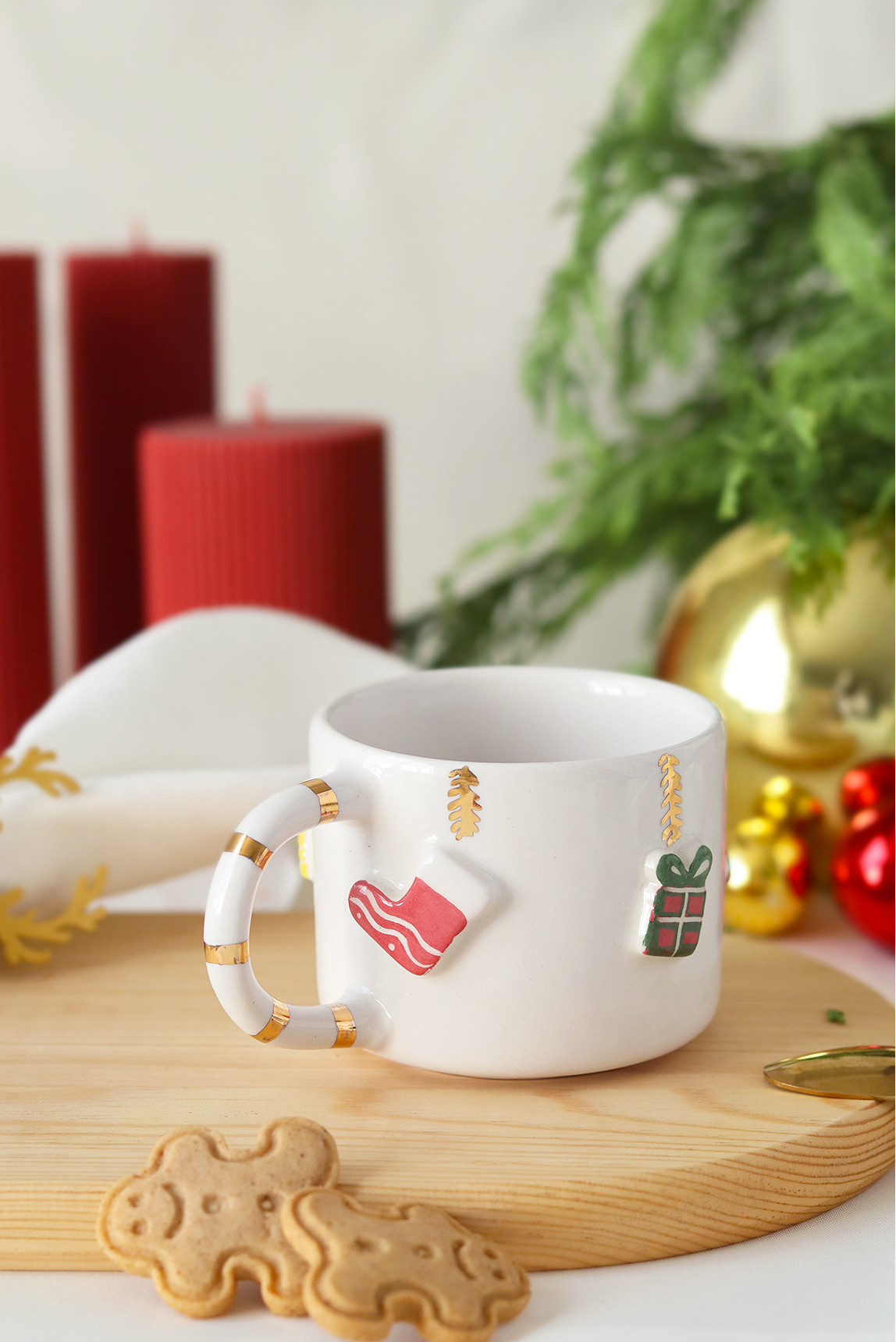 – Yeni yıl ruhunu evinize taşıyan, 24K altın dekorlu bu kupa ile sofralarınıza şıklık katın.; – El yapımı seramik malzemesiyle hem dayanıklı hem de estetik bir kullanım sunar.; – 200 ml hacmiyle ideal boyutta olup, sıcak içecekleriniz için mükemmel bir seçimdir.; – Kolay temizlenebilir yapısı sayesinde elde yıkama önerilmektedir; böylece kupa uzun süre ilk günkü gibi kalır.; – Gıdaya uygun materyali ile güvenle kullanabilirsiniz; lezzetli tatlılarınız veya çayınız için idealdir.; – Türk menşeli olmasıyla yerel zevkinizi yansıtırken, yılbaşı temalı tasarımıyla kutlamalarınıza anlam katar.; -Seramik doğal bir üründür, natürel bir estetiğe sahiptir.; Renk farklılığı, gözenek lekesi, iğne deliği ve fırça izi gibi yüzeyindeki eşitsizlikler kalite hatası olmayıp ürünün El yapımı olmasının bir sonucudur.